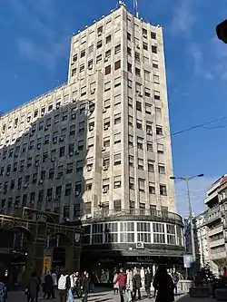Palace Albanija (Serbian: Палата Албанија, Palata Albanija) is a high-rise building in Belgrade, Serbia. Important construction and architectural innovations were incorporated into the project, which made Albanija an exceptional building endeavor in the Balkans.[1] When completed in 1939, it was the first skyscraper in Southeast Europe.[2] It remained the tallest building in the old part of Belgrade for the next 34 years, until being surpassed by the Beograđanka ("Palace Belgrade") in 1974.[1][3]