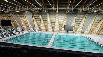 The Palace of Water Sports (Russian: Дворец водных видов спорта; Tatar: Су спорт төрләре сара) is an indoor aquatics centre in Kazan, Tatarstan, Russia which was built for the 2013 Summer Universiade. Located on the banks of the Kazanka River, the competitions in synchronized swimming, diving, swimming and water polo took place here. It later hosted the diving events for the 2015 World Aquatics Championships. As of 2018, the facility was utilized by approximately 3,000 children per day.[1]