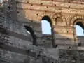 The palace suffered extensive damage due to its proximity to the outer walls during the Ottoman conquest of Constantinople in 1453. Afterwards it was used for a wide variety of purposes. During the 16th and 17th century, it housed part of the Sultan's menagerie. The animals were moved elsewhere by the end of the 17th century, and the building was used as a brothel. From 1719, the Tekfur Sarayı pottery workshop was established, and began to produce ceramic tiles in a style similar to that of İznik tiles, but influenced by European designs and colors. The workshop had five kilns and also produced vessels and dishes.[6] It lasted for around a century before going out of business, and by the first half of the 19th century, the building became a poorhouse for Istanbul Jews. In the early 20th century, it was briefly used as a bottle factory, before being abandoned.[7] As a result, only the elaborate brick and stone outer façade survives today, as one of the few surviving examples of secular Byzantine architecture. In July 2010, the palace had undergone extensive restoration. In March 2015, the building had a roof and glass windows installed. As of 2021, the Palace has been restored and is now a museum, with a finished roof, wooden floors, a new staircase, and fixed windows.