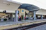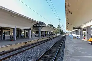 Palaiofarsalos railway station (Greek: Σιδηροδρομικός Σταθμός Παλαιοφαρσάλου, romanized: Sidirodromikós Stathmós Palaiofarsálou) is a railway station near Farsala in Larissa regional unit, Greece. It is located in the village Stavros, 12 kilometres (7.5 mi) west of Farsala. It is situated at the junction of the main Piraeus–Platy railway and the branch line[4] to Trikala and Kalambaka. It is served by intercity trains between Athens and Thessaloniki, and by local trains to Kalambaka.[5]