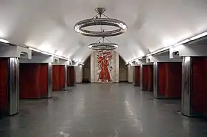 Before 1991, the station was known as Chervonoarmiyska (Ukrainian: Червоноармійська, "Red Army") after the former name of the Velyka Vasylkivska street above it. All Soviet decorations in the station (thus including the ones pictured below) were removed due to 2015 decommunization laws.[1][2]