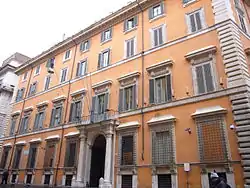 At the beginning of 1926, Mussolini's regime outlawed Freemasonry and confiscated the palace for the use of the Senate. Litigation about this was resolved amicably in 1960 with an agreement between the society and Minister Giuseppe Trabucchi, which was proposed by US Secretary of State Christian Herter. Under this agreement, the part of the palace abutting the Piazza della Rotonda remained under the Freemasons' control.[3] The Senate only gained control of the whole palace in 1985, when the Freemasons relocated to the Villa del Vascello on Janiculum Hill.[1]