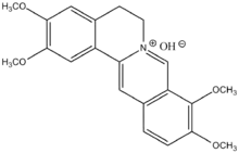 Palmatine is a protoberberine alkaloid found in several plants including Phellodendron amurense, Coptis Chinensis[1] (Rhizoma coptidis, chinese goldthread) and Corydalis yanhusuo,[2] Tinospora cordifolia[3] (gurjo, heart-leaved moonseed), Tinospora sagittata,[4] Phellodendron amurense[5] (amur cork tree), Stephania yunnanensis.[6]
