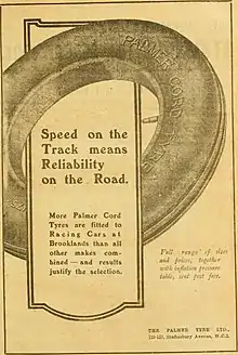 Palmer Cord Tyres was an English tyre manufacturer created in 1895.[1] In 1914 René Thomas drove a Delage car to victory in the Indianapolis 500, wearing Palmer Cord tyres.[2]