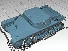 A rare modification that attempted to make the Panzer I into a self-propelled anti-aircraft gun by addition of a single 20mm anti-aircraft autocannon; it was not produced widely due to limited operational utility.[14]