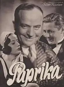 Paprika is a 1932 German comedy film directed by Carl Boese and starring Franciska Gaal, Paul Hörbiger and Paul Heidemann.[1] Made by the German branch of Universal Pictures, it was based on a hit play by Max Reimann, and Otto Schwartz. A French-language version Paprika was released the following year. It is also known by the alternative title of Marriage in Haste. In the US, the film was released almost 2 years later in German on 18 May 1934 in the Yorkville theater under the title Wie man Maenner fesselt (How to charm men).