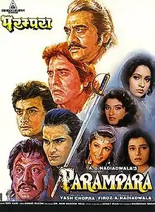 Parampara (transl. Tradition) is a 1993 Indian Hindi-language action romantic drama film starring Sunil Dutt, Vinod Khanna, Aamir Khan, Saif Ali Khan, Ashwini Bhave, Ramya Krishna, Raveena Tandon, Neelam Kothari and Anupam Kher. The film is produced by Firoz A. Nadiadwala and directed by Yash Chopra. Aditya Chopra wrote the screenplay for the film. The film was supposed to be Saif Ali Khan's debut but was a commercial failure, critically panned for its storyline, performances and music. However, critics praised the direction by Yash Chopra. The movie was shot in the famous Indian boarding school, Mayo College.[1]