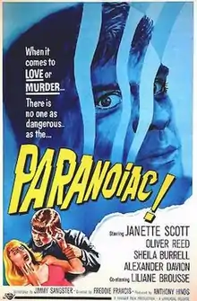 Paranoiac is a 1963 British psychological thriller film directed by Freddie Francis, and starring Janette Scott, Oliver Reed, Sheila Burrell, and Alexander Davion. The screenplay, written by Jimmy Sangster, was based loosely on the 1949 crime novel Brat Farrar by Josephine Tey.