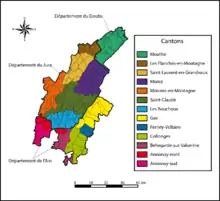 There are also 5 associated communes (listed below in italics), one in Doubs and 4 in Jura.