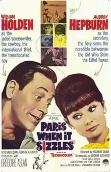 Paris When It Sizzles is a 1964 American romantic comedy film directed by Richard Quine from a screenplay by George Axelrod, based on the 1952 French film Holiday for Henrietta by Julien Duvivier and Henri Jeanson. The film stars William Holden and Audrey Hepburn, with Grégoire Aslan, Raymond Bussières, Noël Coward, and Tony Curtis.