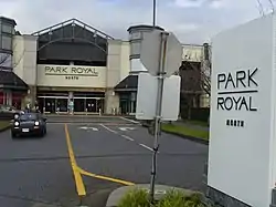 Park Royal Shopping Centre, also known as simply Park Royal, opened in 1950, is a shopping mall located in West Vancouver, British Columbia, Canada. Park Royal was Canada's first covered shopping mall.[1][2] Park Royal has seen multiple redeveloped projects within the last decade. Notably, in 2014, the district of West Vancouver approved a permit for the "removal of the storefront fabric canopies, faux columns and related ‘nautical’ theme designs"[3] as well as the re-facing of the building to "create a cohesive look between Park Royal North and Park Royal South."[4] The shopping centre was originally anchored by Woodward's.
