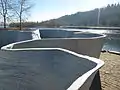 In 2009 the City of Calgary began plans for the Parkdale Plaza which opened in 2014 on the Bow River trail at the end of 34A St. NW. The Plaza offers views of the Douglas Fir Trail and Edworthy Park to the south and Calgary's iconic cluster of downtown high rises to the east. It is situated at the outfall of the City’s underground stormwater infrastructure that empties into the Bow River. In 2007 Calgary founded the Utilities and Environmental Protection (UEP) Public Art Plan,[29] and this specific site was identified as a possible ceremonial site in the city's Landscape of Memory plan and a 'place-making' opportunity in the Outfalls Project, a significant project in the Calgary's public art plan to highlight its utility infrastructure through art. The city's storm drainage system helps prevent flooding by "diverting rain and snowmelt into the nearest river or creek through curbside drains and underground pipes" and slows down the flow through retention ponds then finally empties into the rivers through outfalls.[30]