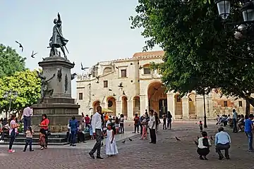 Parque Colon, or Columbus Park, is the central square of the Ciudad Colonial historic district of Santo Domingo, Dominican Republic. In its Center stands a statue of Christopher Columbus, in whose honor the square was renamed in 1887. Previously the square was known as Plaza Mayor.