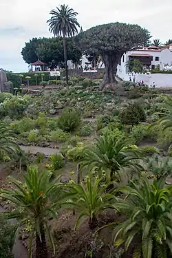 It also has a variety of other plants that are endemic to Tenerife and the Canary Islands,[3] including younger specimens of Dracaena draco, cardoons, and tabaibas.[4] It also houses a winery and coal bunker, as well as a cave with a representation of a Guanche burial.[1]