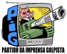 Partido da Imprensa Golpista (PiG, English: Pro-coup Press Party) is a term used by left-wing Brazilian websurfers since 2007 to characterize an alleged attitude of the Brazilian mass media towards President Luiz Inácio Lula da Silva during the 2006 presidential election.[1][2][3] The term was popularized by journalist Paulo Henrique Amorim in his blog.[4] Whenever he uses the term, Amorim writes it with an "i" in lowercase as a pun with the name of the web portal "iG". where he was a journalist before he was dismissed on March 18, 2008, which he describes as a process of "ideological cleansing".[5][6]