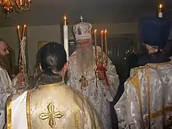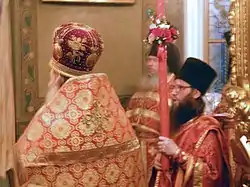 - Russian Orthodox bishop carrying a paschal trikirion (photo)