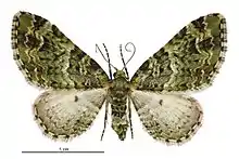 Pasiphila bilineolata is a moth in the family Geometridae.[2] It is endemic to New Zealand.[1][3] The forewings are bright green with numerous wavy darker lines. The hindwings are grey, slightly tinged with reddish. Adults are on wing from September to May.[4]