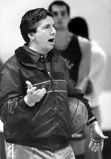 Pat Kennedy graduated from King's College, Pennsylvania in 1975 with a B.A. in political science.[2] He was a player for his first two years, then coached the junior varsity team for his last two years.[3] In 1975, he became an assistant coach at Lehigh under Brian Hill. After three years at Lehigh, Kennedy joined Jim Valvano's staff at Iona in 1978. Valvano left for NC State in 1980, after which Kennedy was promoted to head coach. In six years, he led the Gaels to two NIT and two NCAA tournament appearances. He compiled a 124–60 record while at Iona. He was the NABC District Coach of the Year at Iona in 1984 and the MAAC Coach of the Year in 1985.[4]