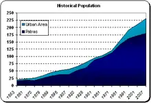 As of the 2011 census, the city of Patras has a population of 167,446 and the municipal unit has 170,896 inhabitants; the municipality has 213,984 inhabitants. The population of its functional urban area was 217,555 in 2011.[2] The core settlement has a history spanning four millennia. In the Roman period, it had become a cosmopolitan center of the eastern Mediterranean whilst, according to the Christian tradition, it was also the place of Saint Andrew's martyrdom.