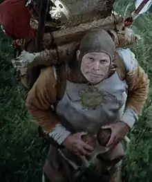 Patsy is a character in the film Monty Python and the Holy Grail and the musical Spamalot. He is played by Terry Gilliam in Monty Python and The Holy Grail. Serving as King Arthur's assistant, he only has a few simple tasks throughout the entire film, such as using two halves of a coconut to simulate the hoofbeats of Arthur's nonexistent horse.[1]