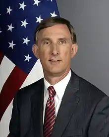 Wohlers also served as Director of the Office of Caucasus Affairs and Regional Conflicts in the Bureau of European and Eurasian Affairs, Deputy Chief of Mission and Chargé d'Affaires at the U.S. Embassy in Skopje, Deputy Director of the Executive Secretariat Staff, Senior Watch Officer in the Operations Center, and as Deputy Executive Secretary at the U.S. Department of State.[2]
