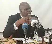 In January 2019, during Makaya's first public speech on the occasion of the greetings to the press, he called on the government to organize a national conference including the opposition, the party in power and the diaspora, in order to get the Congo out of the crisis, and demanded the release of other imprisoned opponents, such as Jean-Marie Mokoko and André Okombi Salissa.[13] He also expressed his ambitions for the 2021 presidential election, considering either running or supporting a candidate unanimously chosen by the opposition.[14] In October 2020, his UPC party was excluded from the official list of parties approved by the government because it was not represented throughout the country, a decision that Paulin Makaya contested.[15]