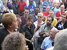 Following two failed leadership runs in 1985 and 2005, Marois briefly left political life in 2006. A year later, she stood unopposed to become the seventh leader of the Parti Québécois on June 26, 2007. From 2008 to 2012, she served as leader of the Official Opposition. In spite of internal strife in 2011 and early 2012, where she survived several challenges to her leadership from prominent members of her caucus – earning her the nickname Dame de béton,[9] "Concrete Lady" – she led the Parti Québécois to victory with a minority government in the 2012 Quebec general election, thus becoming the first female premier in the province's history.[10] As Premier, Marois closed down Quebec's only nuclear reactor, ended asbestos production in Quebec, and pacified the province's turbulent campuses. Her government's highest profile initiative was the proposal of a controversial Quebec Charter of Values which would have banned the province's 600,000 government employees from wearing religious symbols including turbans, Islamic veils and Jewish kippahs.[8] However, the crucifix (notably, the one hung by above the speaker's chair in the provincial legislature) would not have been banned under the Quebec Charter of Values.[11] Her party was defeated 19 months later in the 2014 Quebec general election, an election that she herself had called.[12] Marois was personally defeated in the riding of Charlevoix–Côte-de-Beaupré and announced her resignation as PQ leader.[13][14] Her electoral defeat marked the shortest stay of any Quebec provincial government since the Canadian Confederation and the lowest showing for the PQ since its first general election in 1970.[15][16]