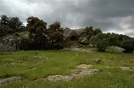 The Dolmen del Tajillo del Moro complements the rock and cave painting of Peñas de Cabrera and shares a similarity to its ritual and symbolic nature. After its excavation, a Megalithic structure was found consisting of an oval chamber and a corridor divided into two parts which served as a tomb for three individuals. The trousseau is made of ceramic material containing globular and hemispherical bowls and plates, largely completed with pieces of silex (flint), among other things.