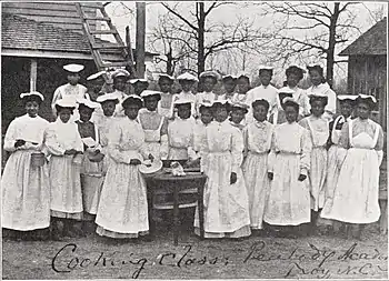 The American Missionary Association (AMA) was a nondenominational abolitionist society dedicated to providing education and political rights to African Americans. The AMA was founded in Syracuse, New York, in 1846 through the merger of a group of abolitionists who supported the uprising of slaves on the Amistad in 1839 with several small missionary organizations.[2] Though the AMA's constitution stated that spreading the Christian gospel to America and other nations was the primary goal of the association, it quickly began to center its activities around anti-slavery missions. As slaves were freed during the Civil War, the AMA altered its mission to making provisions for them. More than 500 churches and schools were set up by the AMA to help acculturate the newly freed slaves.[3] The (AMA) sent Reverend William Ellis to Troy, NC to build a Congregational church and school.
