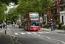 Road markings with the text "Look right" and "Look left" are sometimes used at pedestrian crossings to indicate to pedestrians the direction from which traffic will approach. Common uses may be a pedestrian island on a one way street or where a contraflow bus lane is in use.[6] At times these markings have been painted incorrectly, which can create confusing situations for pedestrians. For example, on a street in Islington, the words "look right" were painted, although the accompanying arrow pointed left and traffic approached from the left.[7]