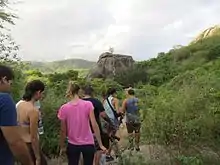 The park receives about 1,200 visitors per month, mainly in the high season of summer.[5] The park attracts scholars, tourists and visitors who love nature and adventure sports.[9] There is an ecological trail that takes about three hours for active people, with some climbing involved. Use of ropes is required in some places. This visits all the formations, and passes a spring of water, specimens of forest and a variety of birds and reptiles.[7] Visitors may also practice rappelling and climbing on the rocks as well as mountain biking and paragliding.[8] As of 2007 there was a shortage of infrastructure and of an effective plan to preserve the environment from damage by visitors. The park lacked signs and educational material to make the visitors aware of the importance of conservation.[5]