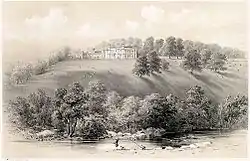 The house is said to date from around 1690, but it was remodelled in 1830. It was purchased in 1854 by Thomas Hardcastle of the cotton manufacturing firm of Ormrod and Hardcastle. It was enlarged and altered later in the century, although most of these additions were demolished during the 1950s.[1] The Ormrod family have owned Pen-y-Lan Hall since the nineteenth century, and to this day sits in a 1,000-acre (400 ha) estate.[2]