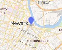 The Penn Plaza East complex takes its name for its location near Penn Station in Newark, New Jersey. Fronting Raymond Boulevard on the banks of the Passaic River, the two office buildings were constructed during a period in the late 1980s and early 1990s when they and numerous postmodern skyscrapers were built near the station and Gateway Center. While others went up between the station and traditional Downtown Newark, Penn Plaza East is on the Ironbound, or east, side of the major transportation hub.[5] As of 2010, the buildings are occupied by the corporate headquarters of New Jersey Transit, JOC Group, and Horizon Blue Cross Blue Shield of New Jersey, which owns their building.[6][7]