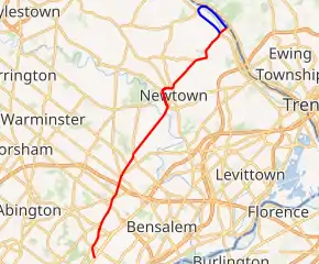 Pennsylvania Route 532 (PA 532) is a 19.1-mile-long (30.7 km) state route located in the Philadelphia, Pennsylvania area. The route runs from an intersection with U.S. Route 1 (US 1) in Northeast Philadelphia north to an intersection with PA 32 in Washington Crossing near the Washington Crossing Bridge over the Delaware River. The route passes through developed areas in Northeast Philadelphia before heading north through suburban Bucks County, serving Feasterville, Holland, and Newtown before coming to Washington Crossing.