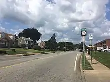 PA 532 begins at an intersection with US 1 (Roosevelt Boulevard) in the Northeast Philadelphia section of the city of Philadelphia in Philadelphia County, heading north-northwest on two-lane undivided Welsh Road. The road passes through residential areas before running past businesses. The route briefly becomes Old Bustleton Avenue before it turns northeast onto Bustleton Avenue, a four-lane undivided road with some segments having a center left-turn lane. PA 532 crosses Grant Avenue and continues through areas of homes and businesses in the Bustleton neighborhood, curving north and coming to a bridge over CSX's Trenton Subdivision. The road runs past more houses, businesses and apartments, crossing PA 63. The route passes to the west of George Washington High School and intersects Verree Road as it continues through more developed areas, heading northeast into the Somerton neighborhood. PA 532 crosses Byberry Road and continues north, coming to a bridge over SEPTA's West Trenton Line west of the Somerton station. The route crosses Philmont Avenue and curves northeast, reaching an intersection with County Line Road.[2][3]