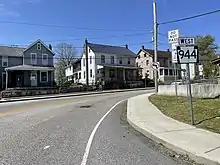 When routes were legislated in Pennsylvania in 1911, what is now PA 944 was not assigned a number. By this time, Wertzville Road was an unpaved road.[4] The road between Wertzville and Enola later became Legislative Route 569.[5] PA 944 was designated in 1928 to run from Wertzville east to PA 5 (now US 11/US 15) in Enola. At this time the entire length of the route was unpaved except for the easternmost portion.[6] Upon designation, plans were made to improve this stretch of road.[5] On February 25, 1929, a bill passed that would extend PA 944 west from Wertzville to Carlisle Springs as well another bill that authorized the state to take over the road between Newburg and McCrea.[7] By 1930, the unpaved portion of the route was under construction.[8] PA 944 was extended from Wertzville southwest to US 30 between Fort Loudon and St. Thomas in Franklin County in 1937, following its current alignment west to PA 233 before it continued southwest through Roxbury and Upper Strasburg to US 30.[9][10] The entire length of PA 944 was paved in the 1930s except between south of Maple Grove and PA 316 south of Upper Strasburg and for a distance to the south of Roxbury.[10] In the 1940s, the western terminus of PA 944 was cut back to PA 433/PA 641 in Roxbury. The section of the former route between Roxbury and US 30 became unnumbered, with a portion of road to the south of Upper Strasburg removed to make way for the Letterkenny Army Depot.[11][12] In the 1960s, the western terminus of PA 944 was truncated to its current location at PA 233, with the former alignment between Roxbury and PA 233 becoming a northern extension of PA 997.[13]