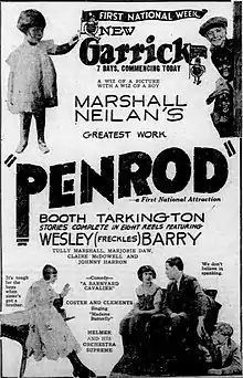 Penrod is a 1922 American comedy film directed by Marshall Neilan and written by Lucita Squier. It is based on the 1914 novel Penrod by Booth Tarkington. The film stars Wesley Barry, Tully Marshall, Claire McDowell, John Harron, Gordon Griffith and Newton Hall. The film was released on February 20, 1922, by Associated First National Pictures.[1][2][3]