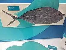 Plethodus pentagon was revised in the year 2000, determined to be a distinct genus and named Pentanogmius[3] and a year later Louis Taverne determined that both Bananogmius evolutus and Bananogmius crieleyi (named by Applegate in 1970) did not match the autapomorphies defining Bananogmius and must instead represent a different genus of plethodid fish.[4] In follow-up publications, Taverne officially includes both "B." evolutus and "B." crieleyi in the genus Pentanogmius.[2] P. furcatus represents a second European species from Bohemia and was originally discovered in 1878.[5] In 2009 Joseph Fritsch and Kris Howe collected another specimen of Pentanogmius, put on display at the Perot Museum of Nature and Science. This specimen from the Britton Formation is the currently oldest known species of Pentanogmius and was described as Pentanogmius fritschi in 2016.[6]
