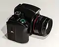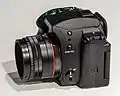 The Pentax K-70 is a 24 megapixel compact APS-C digital SLR camera announced by Ricoh on June 8, 2016. In contrast to the previously introduced APS-C flagship K-3 II, it includes a flash, flip-out display and built-in WiFi. In common with that camera, the K-70 is capable of Pixel Shift Resolution images, which provide higher colour resolution and require the camera to be stationary. It is the first Pentax camera to also include on-sensor PDAF elements that support hybrid autofocus, enabling continuous autofocus during video capture.