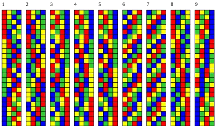 In the popular puzzle Rubik's cube invented in 1974 by Ernő Rubik, each turn of the puzzle faces creates a permutation of the surface colors.