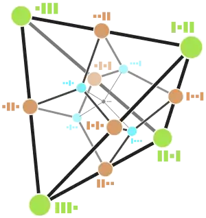 Two connected vertices differ by swapping two coordinates, whose values differ by 1.[3] The pair of swapped places corresponds to the direction of the edge. (In the example image the vertices (3, 2, 1, 4) and (2, 3, 1, 4) are connected by a blue edge and differ by swapping 2 and 3 on the first two places. The values 2 and 3 differ by 1. All blue edges correspond to swaps of coordinates on the first two places.)