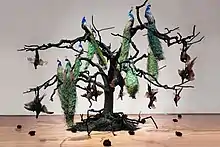 Petah Coyne (born 1953) is a contemporary American sculptor and photographer best known for her large and small scale hanging sculptures and floor installations.[2] Working in innovative and disparate materials, her media has ranged from the organic to the ephemeral, from incorporating dead fish, mud, sticks, hay, hair, black sand, specially-formulated and patented wax, satin ribbons, silk flowers, to more recently, velvet, taxidermy, and cast wax statuary.[2][3] Coyne's sculptures and photographs have been the subject of more than 30 solo museum exhibitions.[4]