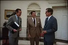 With his second and final term as governor expiring as 1985,[3] du Pont, as the dominant Delaware politician, was widely expected by many to challenge the popular incumbent Democratic U.S. Senator and future President, Joe Biden, but du Pont had little interest in legislative politics and declined to run, preparing instead for a long shot bid for the Republican U.S. presidential nomination in the 1988 election. (His wife, Elise, ran for the U.S. Congressional seat that he had previously held in 1984, but lost to incumbent Democrat Tom Carper.)[6] He declared his intent on September 16, 1986,[7] before anyone else. Biden also sought his party's nomination but dropped out of the race after a plagiarism scandal.
