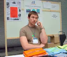 ![]() Baláž plan the annual summer Esperanto study program using Wi-Fi Internet at the 96th World Congress of Esperanto in Copenhagen (2011). | |