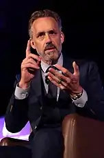 During an event at the Cambridge Union in November 2018, Žižek had called Peterson's work "pseudo-scientific", labeled him as his "enemy", and criticized Peterson's work on the idea of a cultural Marxism, stating that "his crazy conspiracy theory about LGBT+ rights and #MeToo as the final offshoots of the Marxist project to destroy the West is, of course, ridiculous."[1] According to Matthew Sharpe writing for The Conversation, "the term 'cultural Marxism' moved into the media mainstream around 2016, when psychologist Jordan Peterson was protesting a Canadian bill prohibiting discrimination based on gender. Peterson blamed cultural Marxism for phenomena like the movement to respect gender-neutral pronouns which, in his view, undermines freedom of speech."[3] Critics have accused Peterson of misusing the term postmodernism, referring to postmodern philosophy, as a stand in term for the far-right and antisemitic Cultural Marxism conspiracy theory.[4]