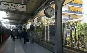 The Petralona Metro Station (Greek: Σταθμός Πετραλώνων Stathmos Petralonon) is a metro Line 1 station, located in Petralona 7.016 km from Piraeus station. It is located in Athens and took its name from the neighbourhood in Athens, It was first opened on 22 November 1954 and features two platforms. It was renovated in 2004.