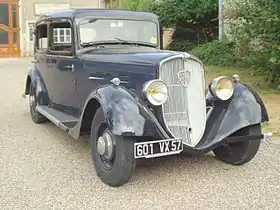 Four standard bodies were listed for the "Longue" wheelbase cars.[2] The least costly, listed at 31,000 francs, was a six-light "limousine familiale" with four doors and a deep bench seat combined with large amounts of rear legroom.[2] There was also a "Berline aėrodynamique" with four doors and a streamlined body with a steeply raked tail and an overall length above 5,000 mm (197 in), as well as a "Coach Sport" with two doors and four seats which exploited the longer wheelbase to support a low streamlined look.[2] From the summer of 1934 there was another long two-door four-seater version listed, called the "Coach Profilė" .[2]
