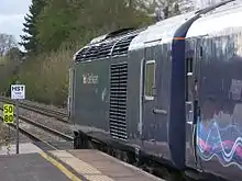 Pewsey railway station serves the village of Pewsey in the county of Wiltshire, England. The station is on the Berks and Hants line, 75 miles 26 chains (75.33 mi; 121.2 km) measured from the zero point at London Paddington,[1] and served by intercity trains operated by Great Western Railway between London and the West Country. The average journey time to Paddington from Pewsey is just over an hour. Services between Pewsey and Bedwyn, the next station up the line, are infrequent, most eastbound services next calling at Hungerford, Newbury or Reading instead. This is because Bedwyn was the most westerly point of the Network SouthEast on this line, while Pewsey was an InterCity station.