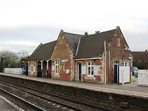 The railway was operated from the start by the Great Western Railway and had been built using its 7 ft (2,134 mm) broad gauge, but in 1874 it was converted to 4 ft 8+1⁄2 in (1,435 mm) standard gauge. Initially it was just a single track with a platform on the south side. A passing loop and second platform was installed at Pewsey after a couple of years, and the line was converted to double track in 1899 in preparation for the opening of the Stert and Westbury Railway at Patney and Chirton. A signal box was situated on the west end of the eastbound platform; it was replaced by a larger signal box in 1933 but this was closed in 1966.[2]