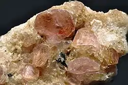 Pezzottaite, marketed under the name raspberyl or raspberry beryl, is a mineral species first recognized by the International Mineralogical Association in September 2003. Pezzottaite is a caesium analogue of beryl, a silicate of caesium, beryllium, lithium and aluminium, with the chemical formula Cs(Be2Li)Al2Si6O18. Named after Italian geologist and mineralogist Federico Pezzotta, pezzottaite was first thought to be either red beryl or a new variety of beryl ("caesium beryl"); unlike actual beryl, however, pezzottaite contains lithium and crystallizes in the trigonal crystal system rather than the hexagonal system.